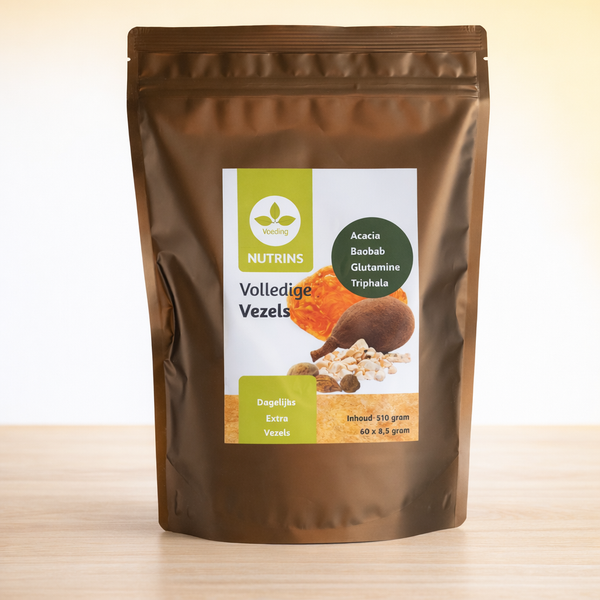 Natuurlijke vezelsupplementen voor een gezonde spijsvertering en darmgezondheid. Met prebiotische vezels die je darmflora ondersteunen.